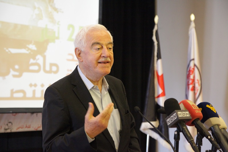 أما فلسطين، وهي جوهر القضية وفي صميم قوميتنا، فنحن في صلب معركتها منذ العام 1936 إلى اليوم، وإننا نقف مع كلّ قوى المقاومة الفلسطينية في معركة واحدة، عنوانها تحرير فلسطين ودحر الاحتلال.
