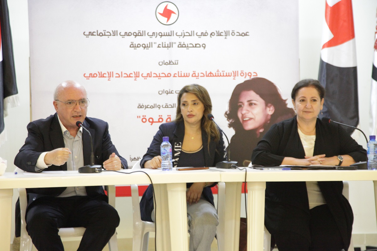 تواصلت في “قاعة الشهيد خالد علوان” في بيروت، محاضرات دورة الاستشهاديّة سناء محيدلي للإعداد الإعلامي التي تُنظّمها عمدة الإعلام في الحزب السوري القومي الاجتماعي وجريدة “البناء”، فقدّمت الكاتبة والإعلامية فاطمة الطفيلي محاضرة تمحورت حول مخارج الحروف وقواعد النطق والتنفس في الخطابة والحوار، وتناول رئيس تحرير البناء النائب السابق ناصر قنديل موضوع قواعد السلوك والحضور والإيتيكيت الإعلامي في إطار تطبيقيّ. وقدّمت للمحاضرين وكيل عميد الإعلام رمزا صادق.