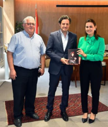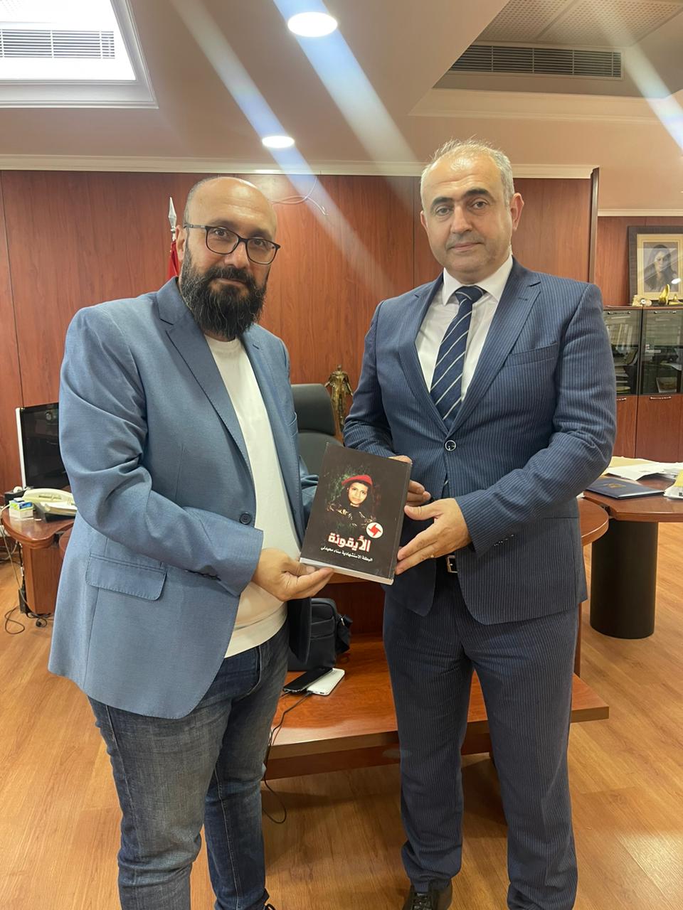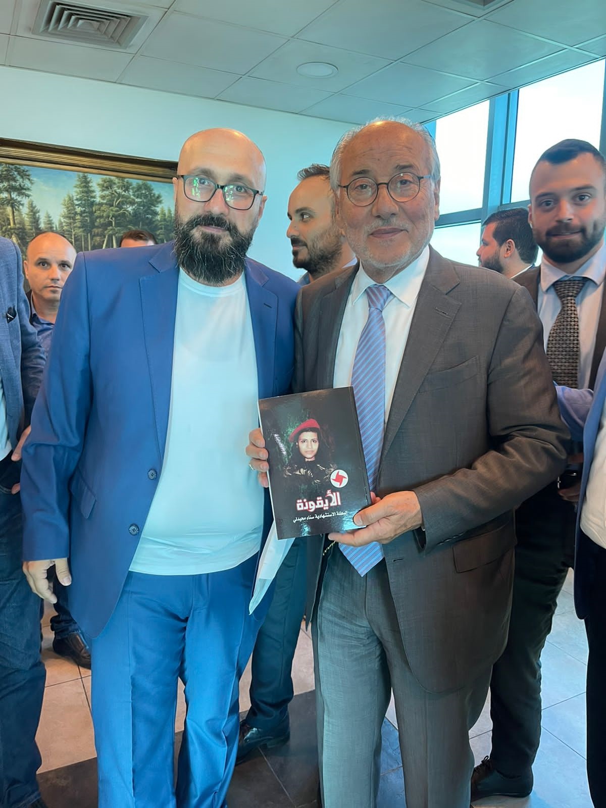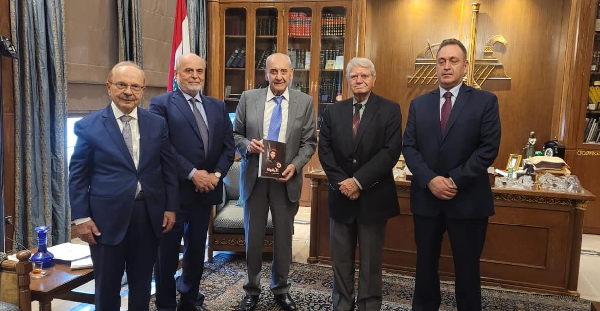 نائب رئيس الحزب وائل الحسنية وعُمد، الخارجية والاعلام والقضاء، غسان غصن، معن حمية وريشار رياشي، يُسلّمون أعضاء المجلس السياسي في حزب الله الوزير السابق الحاج محمود القماطي، الحاج أبو سعيد الخنسا، الحاج غالب أبو زينب، الدكتور علي ضاهر والحاج سعيد نصر الدين، نسخاً من كتاب “الأيقونة الاستشهادية سناء محيدلي”. (7 أيلول 2023)