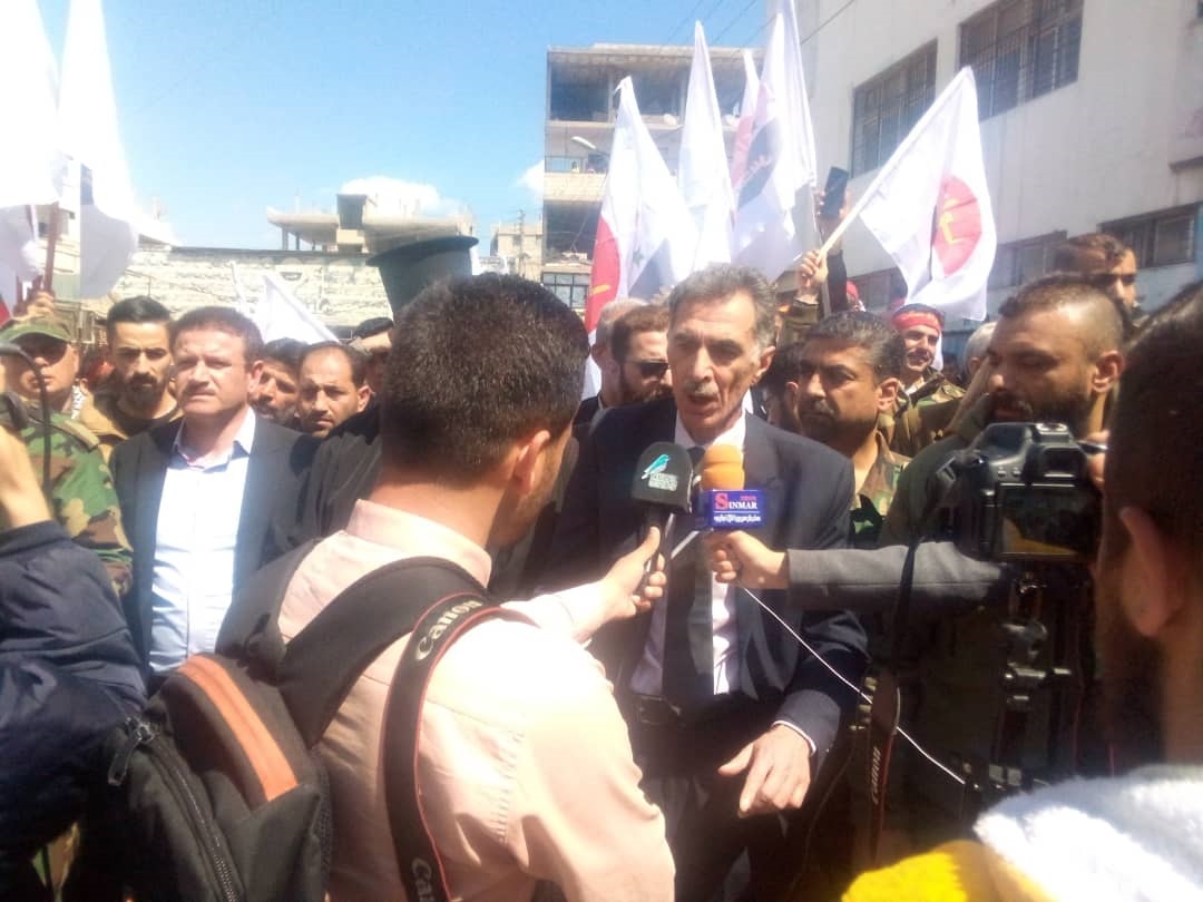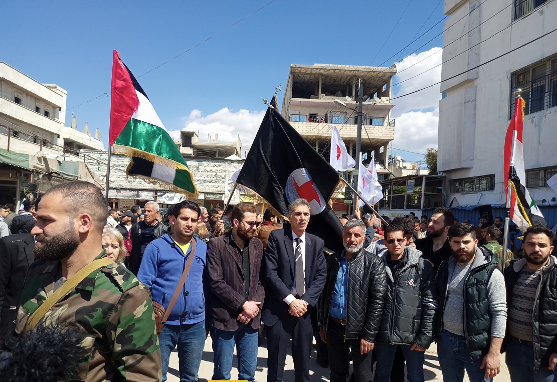 المسيرة إنطلقت من أمام مسجد فلسطين باتجاه ساحة الشهداء في مخيم النيرب، وشارك فيها عضو المكتب السياسي _ منفذ عام حلب في “القومي” طلال حوري على رأس وفد ضمّ  أعضاء هيئة المنفذية خجادور أوسكانيان، محمد عبد الوهاب، عضو مجلس محافظة حلب عبدالإله جوما، آمر مجموعة جامعة حلب لنسور الزوبعة محمد أرناؤوطي، ومفوض التنمية المحلية بمديرية القلعة زياد حسنة.