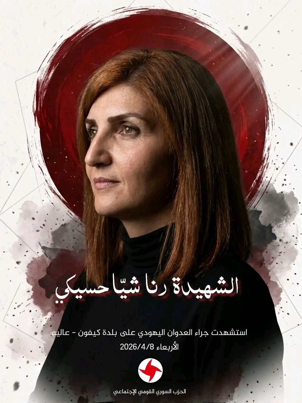 تنعى منفذية الغرب في الحزب السوري القومي الاجتماعي المناضلة رنا شيّا حسيكي، التي ارتقت شهيدةً إثر عدوانٍ “إسرائيلي” مجرم.